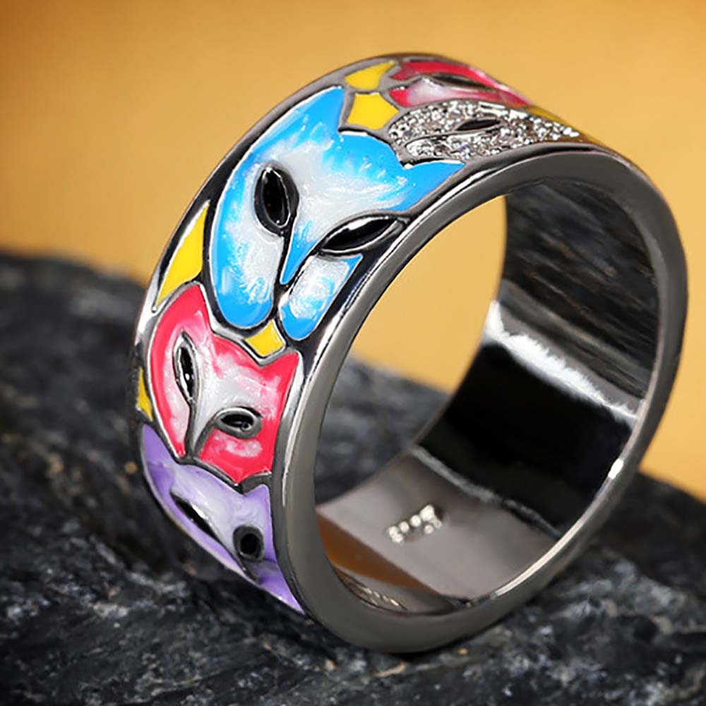 Кольцо в винтажном стиле с родиевым покрытием с эмалью