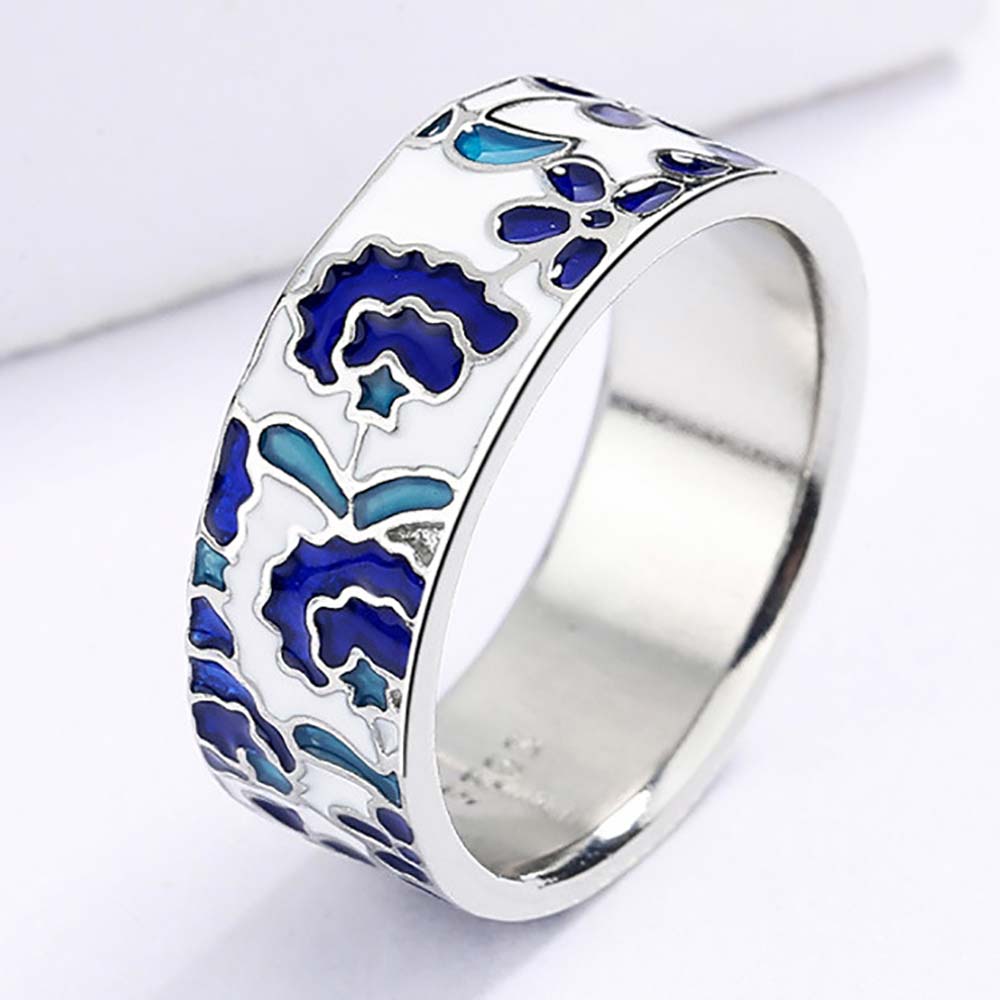 Кольцо в винтажном стиле с родиевым покрытием с эмалью