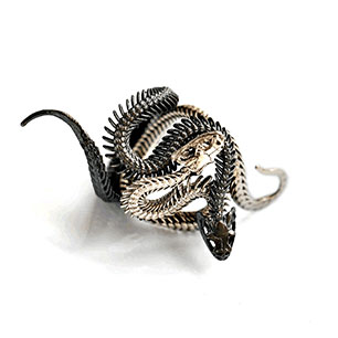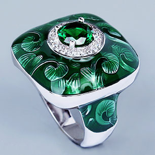 Кольцо в винтажном стиле с родиевым покрытием с эмалью