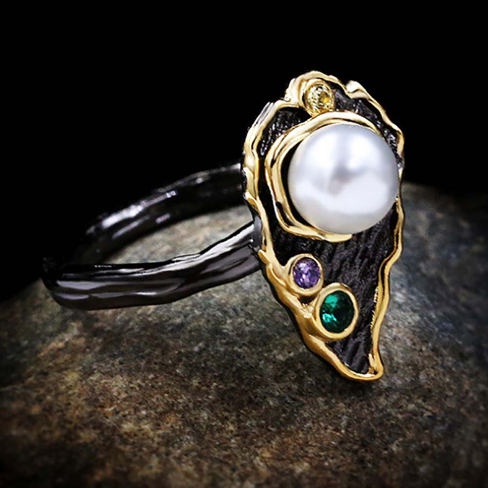 Кольцо в винтажном стиле с золотым покрытием 14K 1 мкр с цирконами (фианитами)