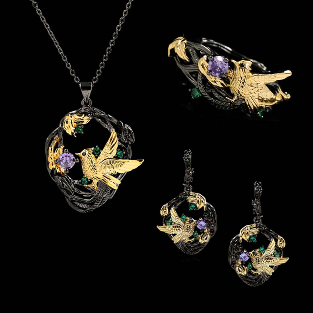 Кольцо в винтажном стиле с золотым покрытием 14K 1 мкр с цирконами (фианитами)