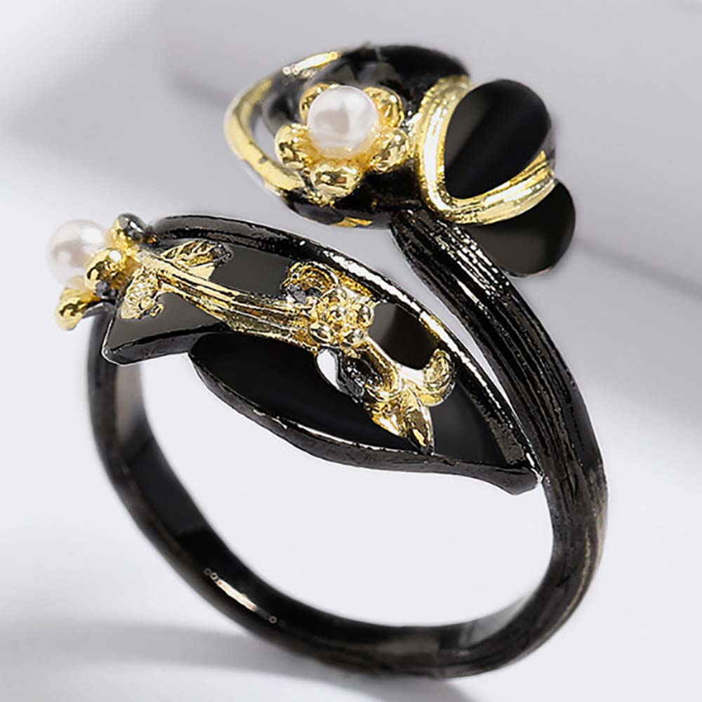 Кольцо в винтажном стиле с золотым покрытием 14K 1 мкр с цирконами (фианитами)