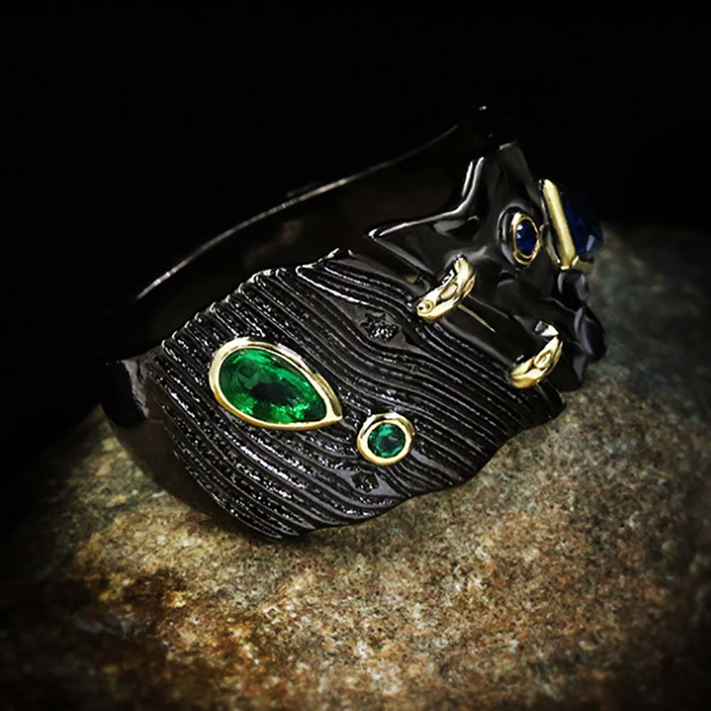 Кольцо в винтажном стиле с золотым покрытием 14K 1 мкр с цирконами (фианитами)