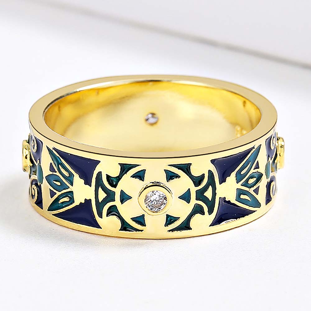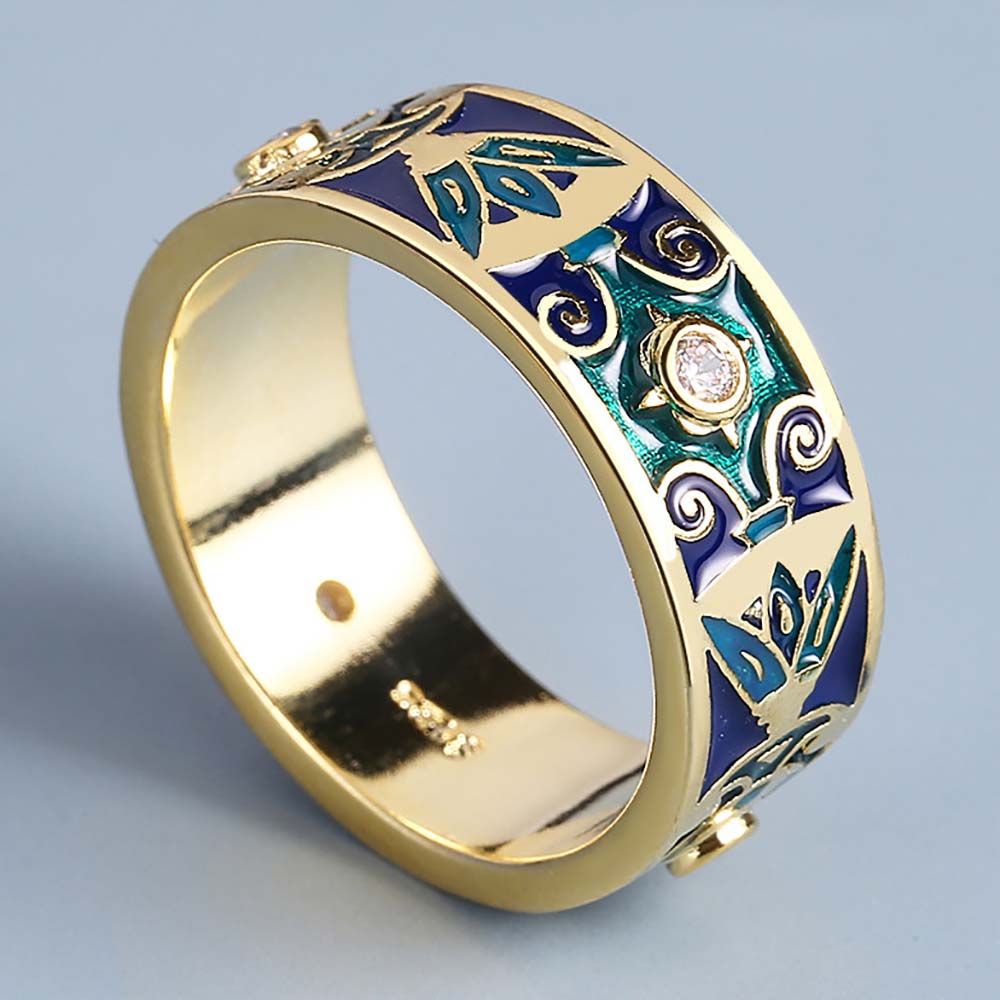 Кольцо в винтажном стиле с золотым покрытием 14K 1 мкр с цирконами (фианитами)