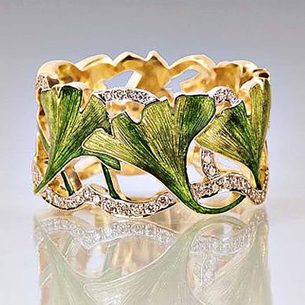 Кольцо в винтажном стиле с золотым покрытием 14K 1 мкр с цирконами (фианитами)
