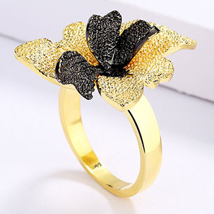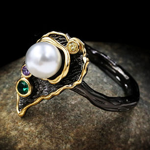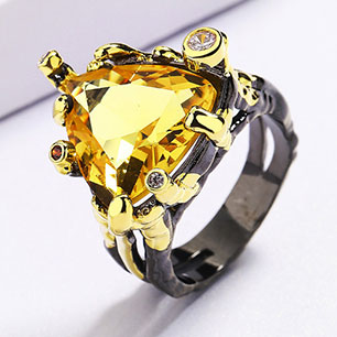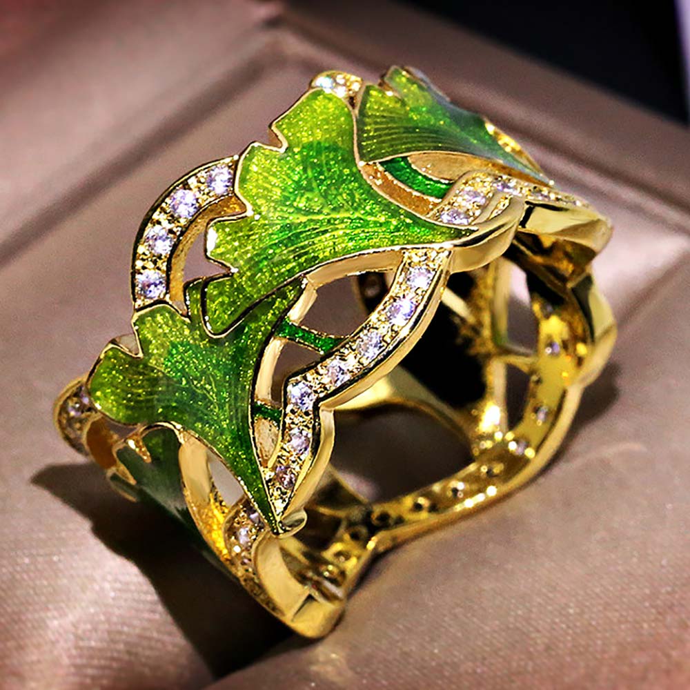 Кольцо в винтажном стиле с золотым покрытием 14K 1 мкр с цирконами (фианитами)