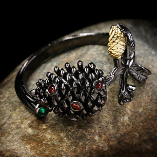 Кольцо в винтажном стиле с золотым покрытием 14K 1 мкр с эмалью