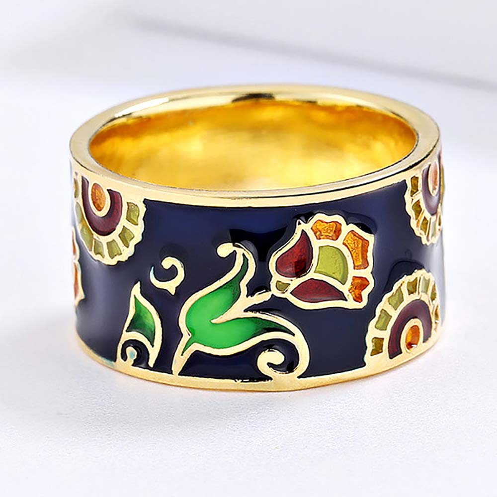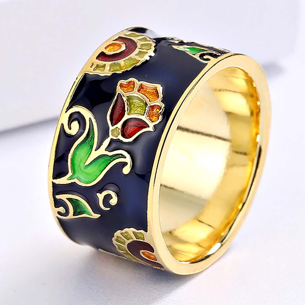 Кольцо в винтажном стиле с золотым покрытием 14K 1 мкр с эмалью