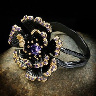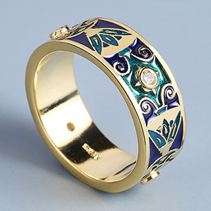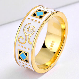 Кольцо в винтажном стиле с золотым покрытием 14K 1 мкр с эмалью
