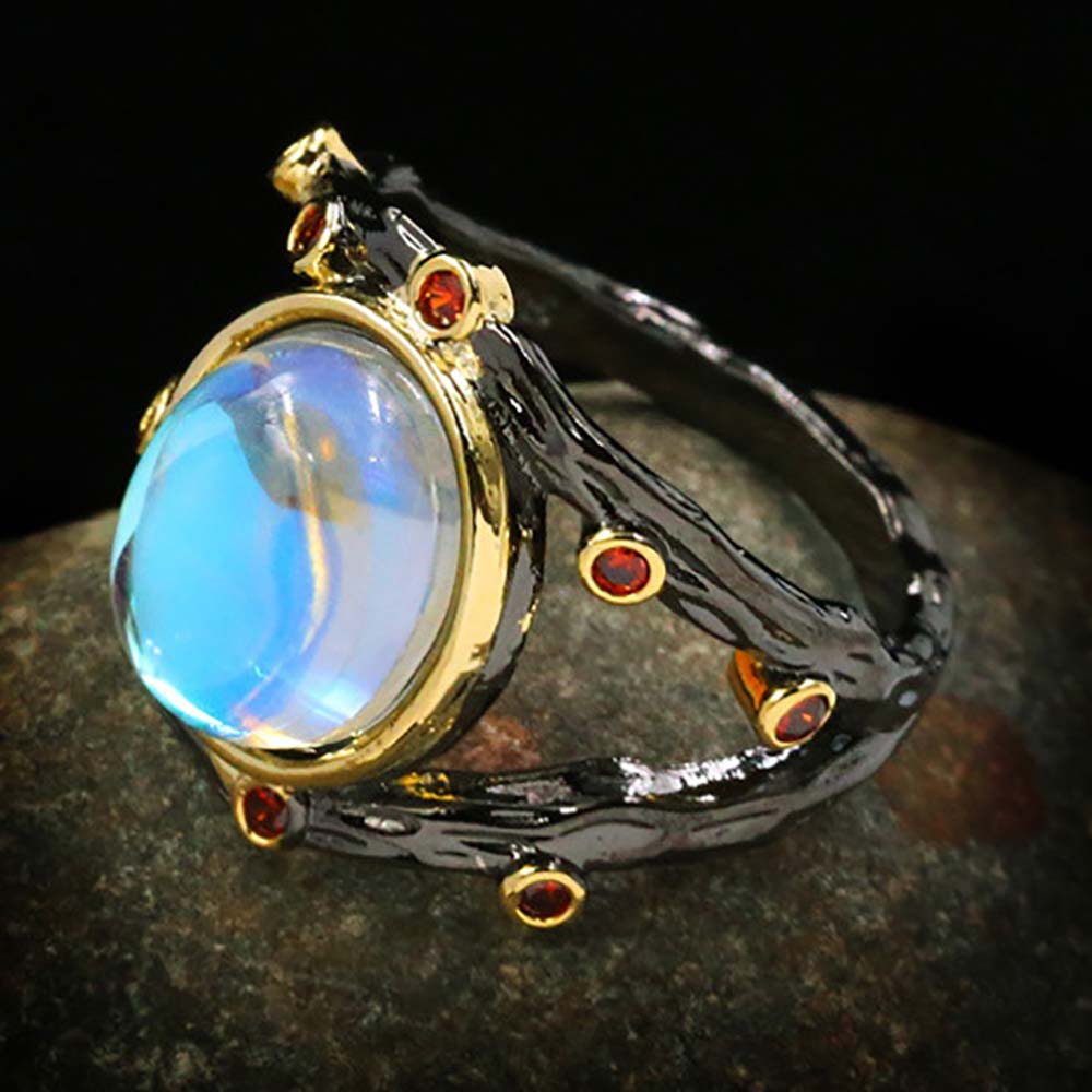 Кольцо в винтажном стиле с золотым покрытием 14K 1 мкр с лунным камнем