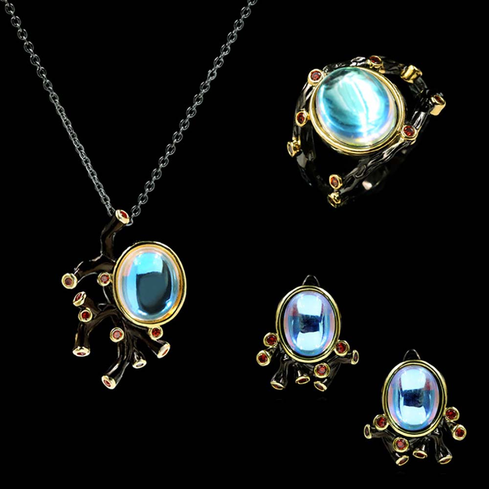 Кольцо в винтажном стиле с золотым покрытием 14K 1 мкр с лунным камнем
