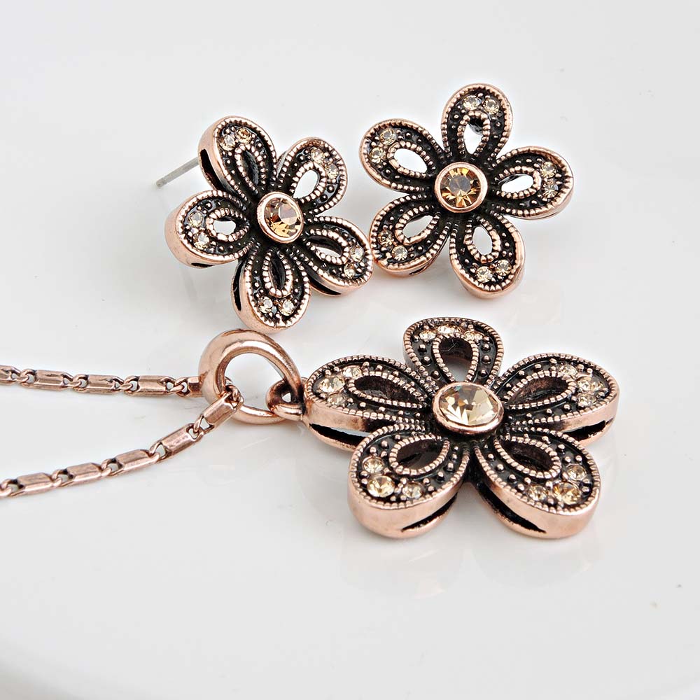 Комплект бежевый с гальваническим покрытием под медь со стразами