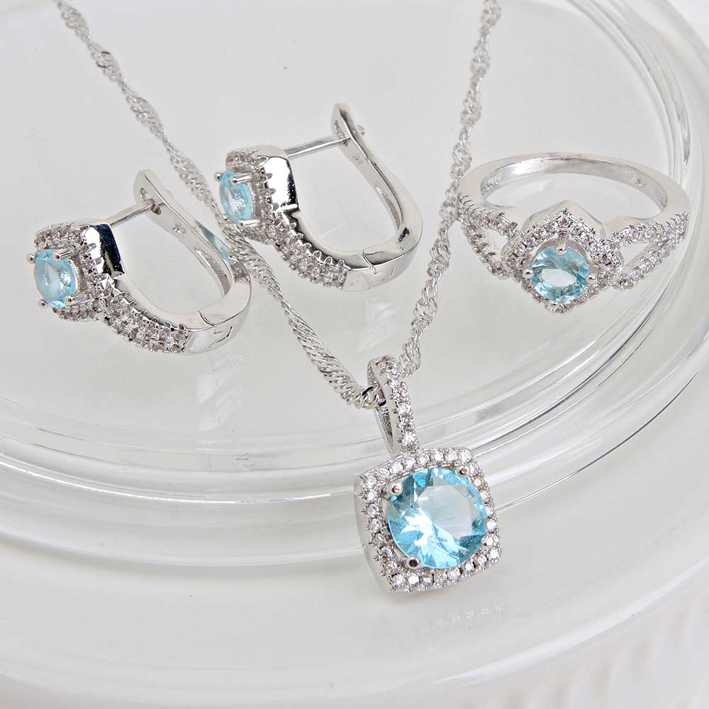 Комплект с родиевым покрытием с цирконами (фианитами)