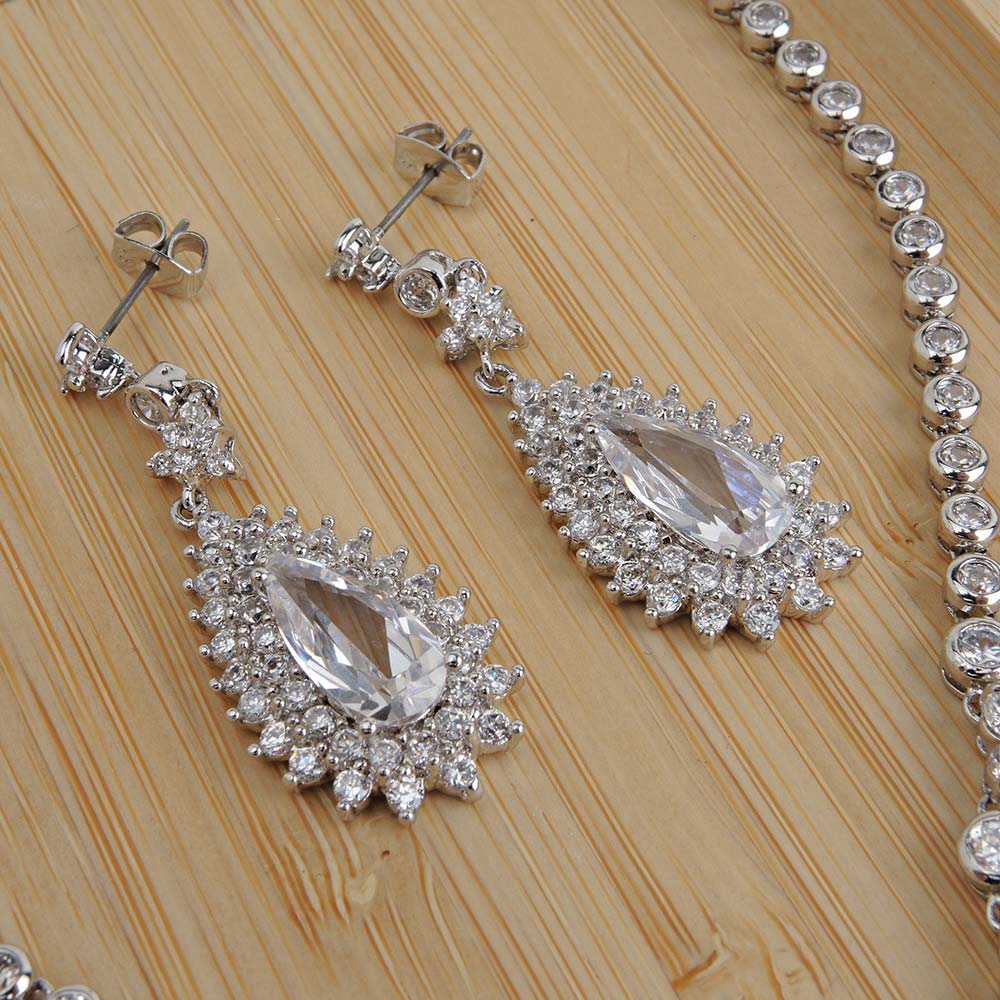Комплект с родиевым покрытием с цирконами (фианитами)