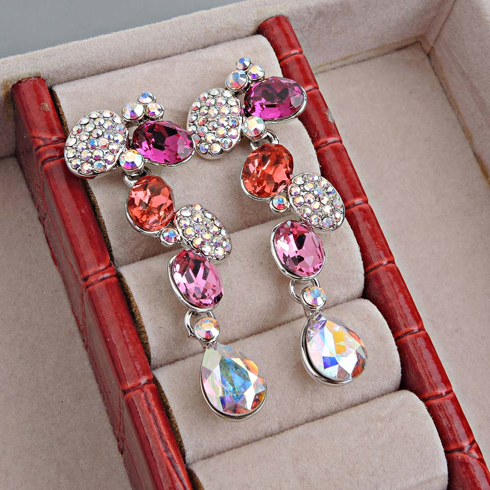 дл 40+5см, серьги 4.5*1.5см комплект:колье,серьги(вставки:кристаллы sw,розовые покрытие:родирование)