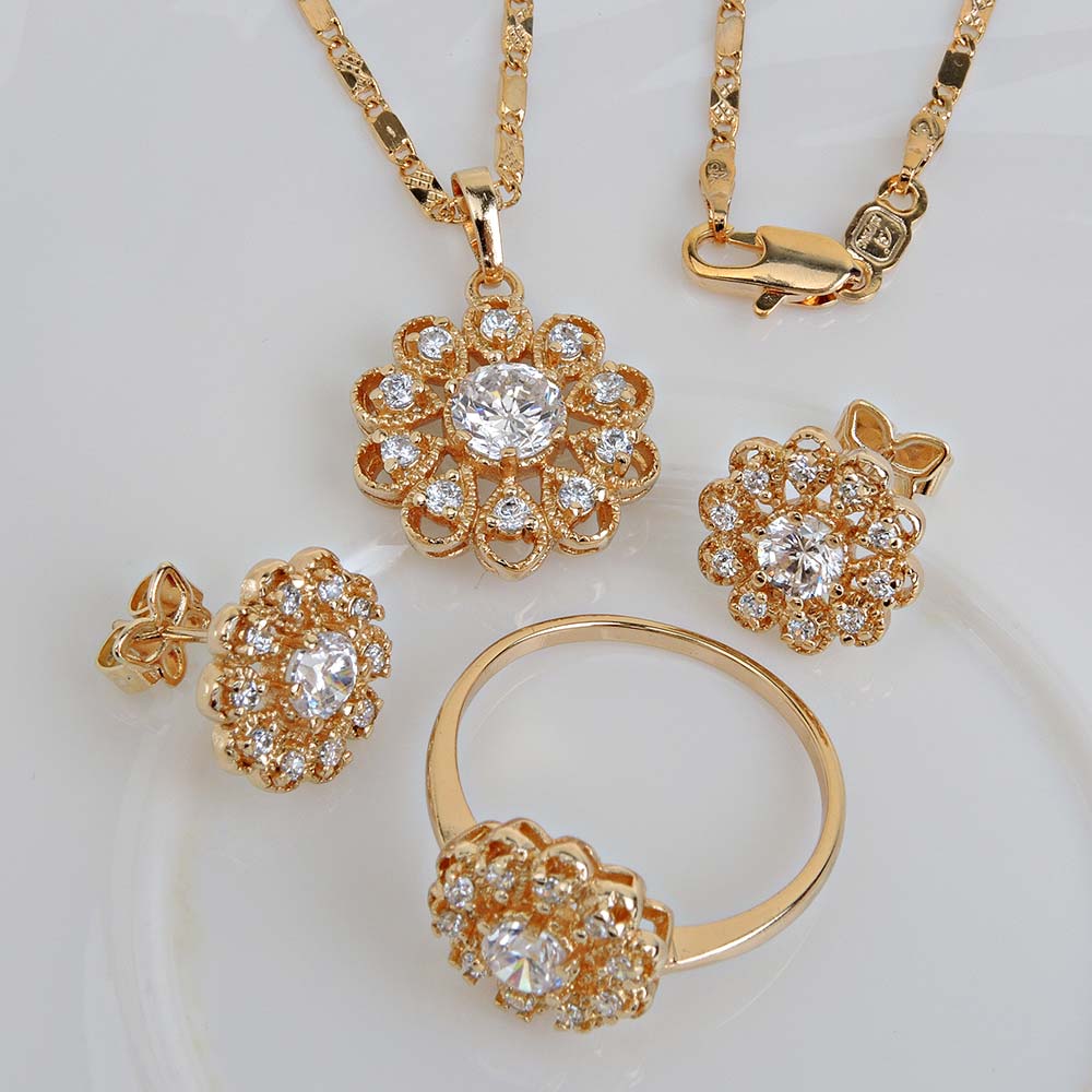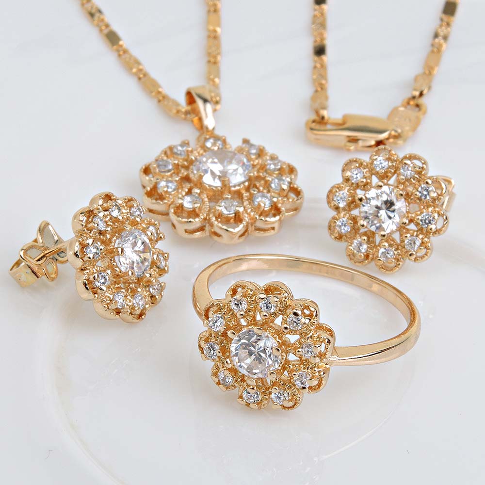 Комплект с золотым покрытием 18K 1 мкр с цирконами (фианитами)