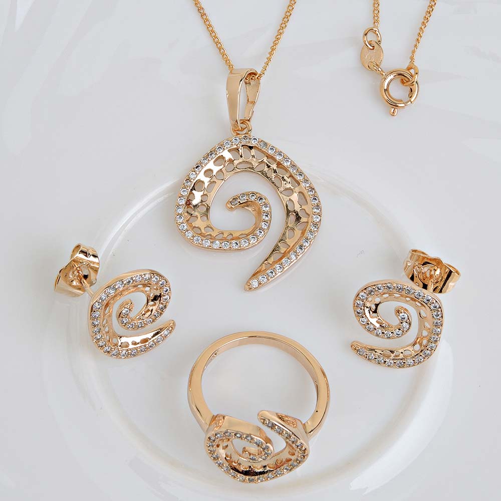 Комплект с золотым покрытием 18K 1 мкр с цирконами (фианитами)