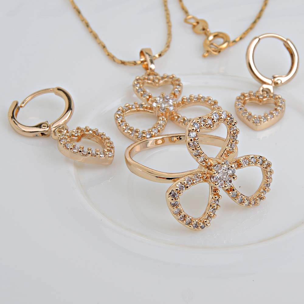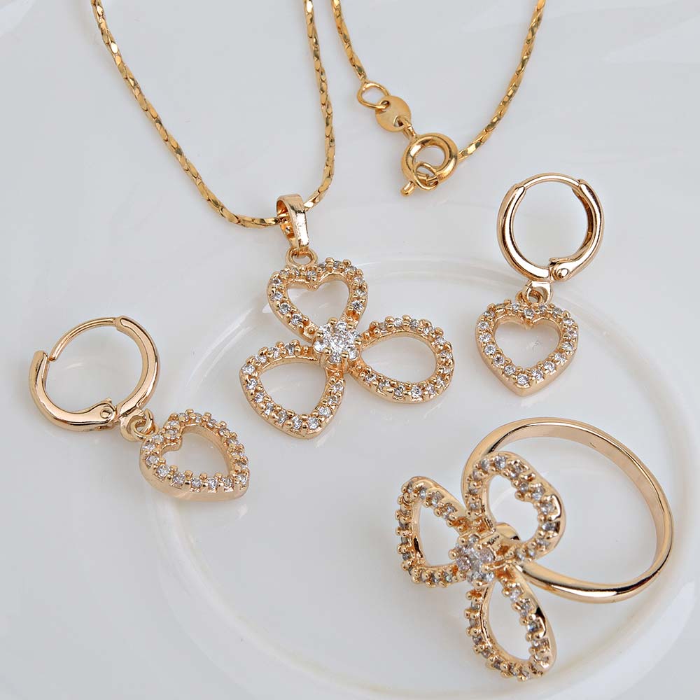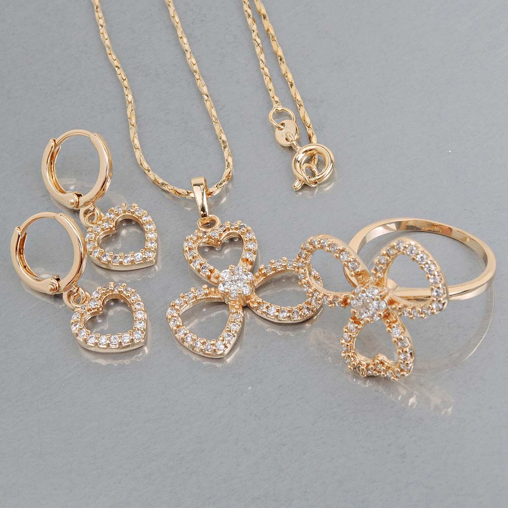 Комплект с золотым покрытием 18K 1 мкр с цирконами (фианитами)