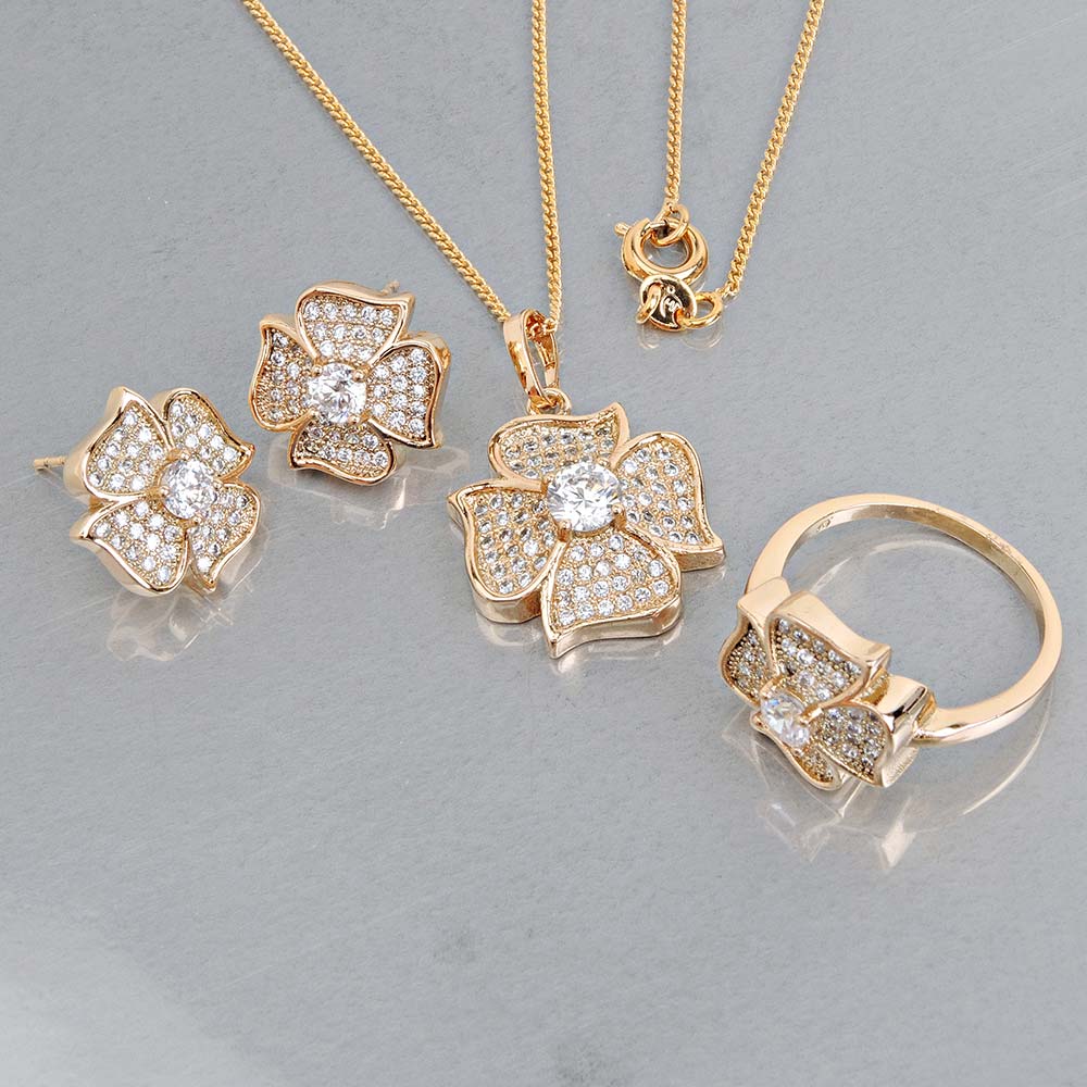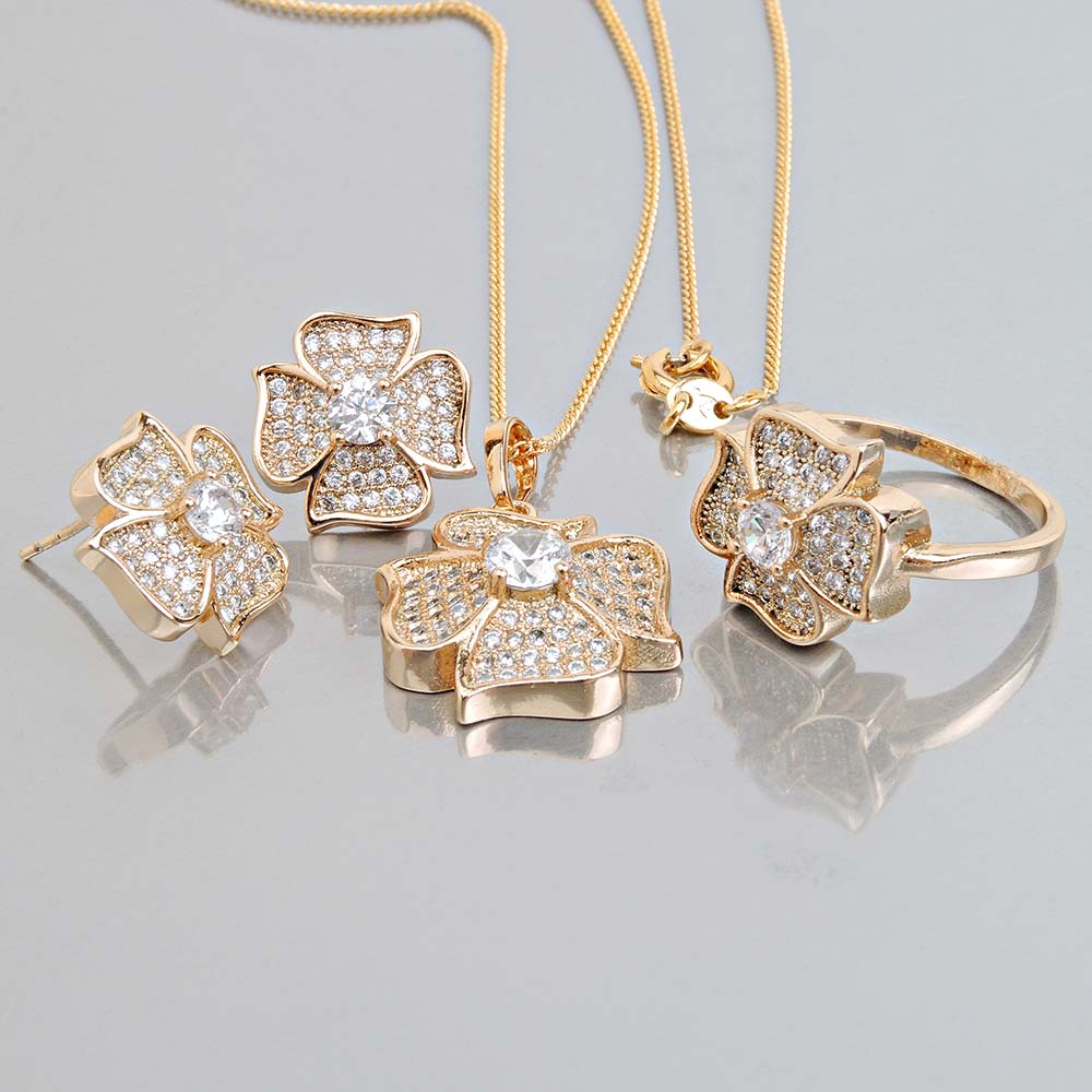 Комплект с золотым покрытием 18K 1 мкр с цирконами (фианитами)