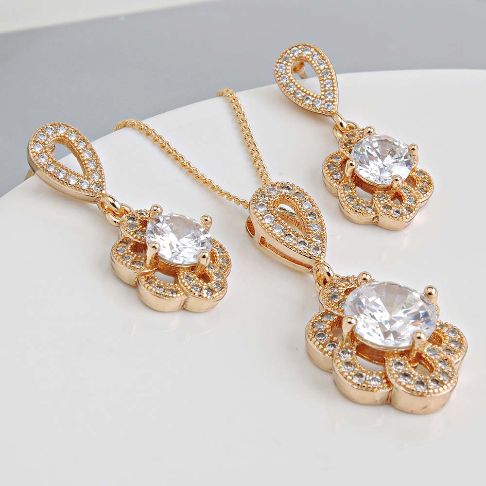 Комплект с золотым покрытием 18K 1 мкр с цирконами (фианитами)