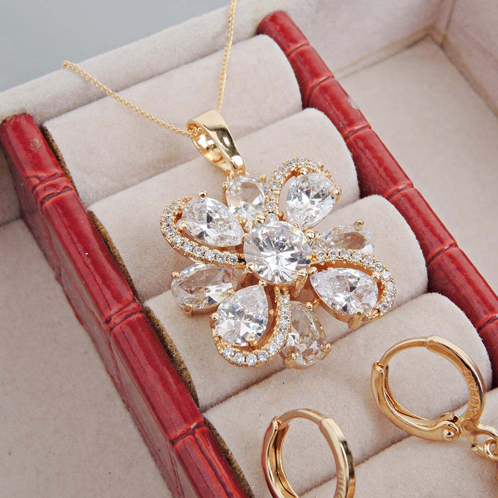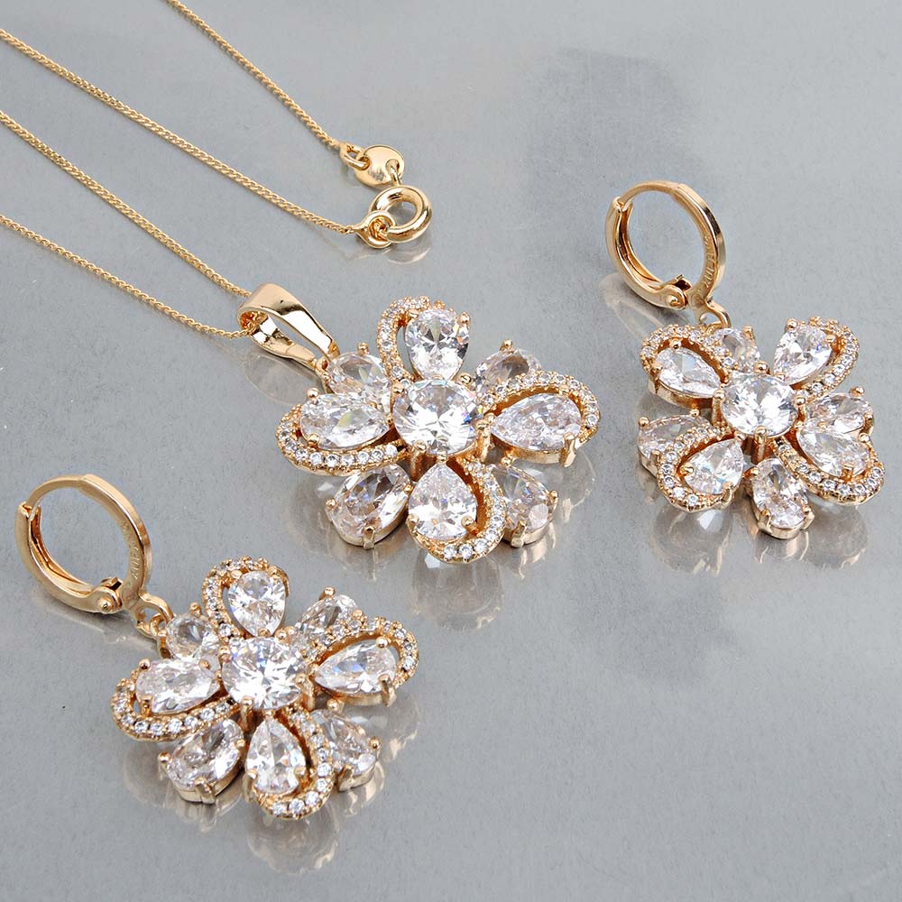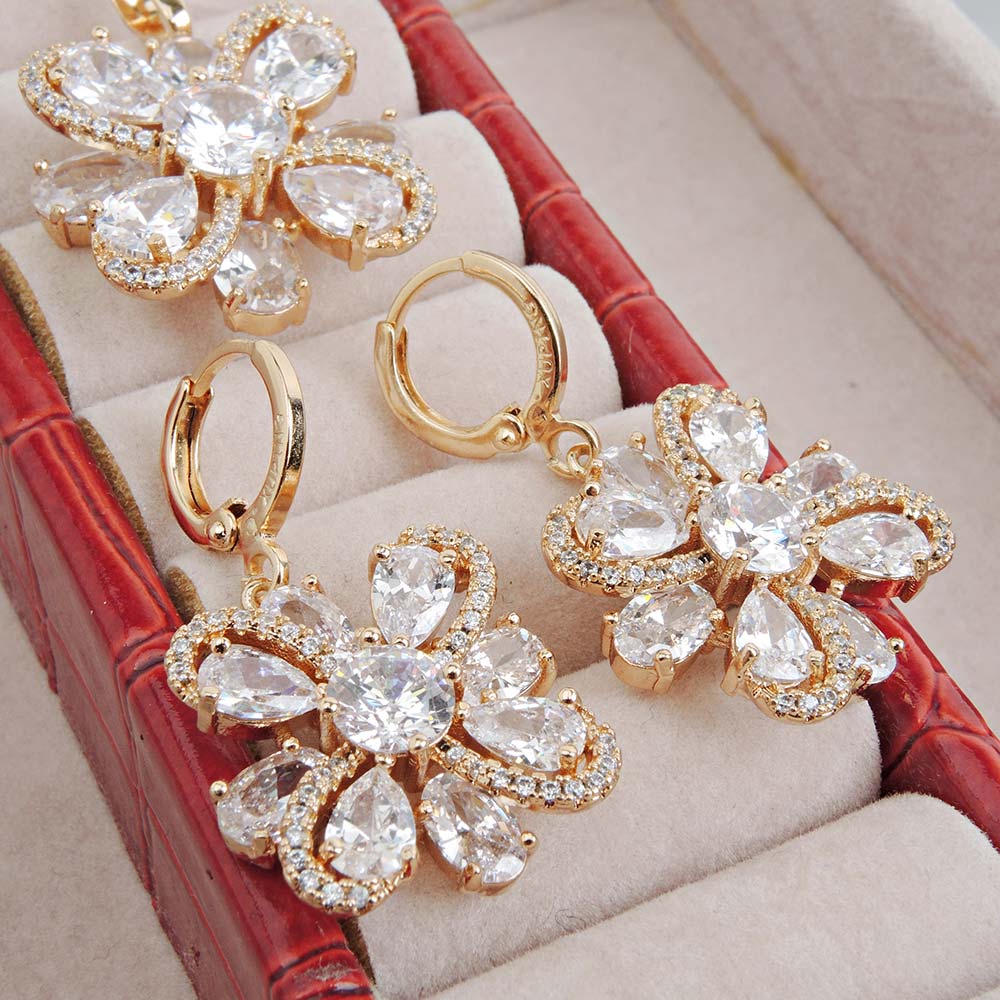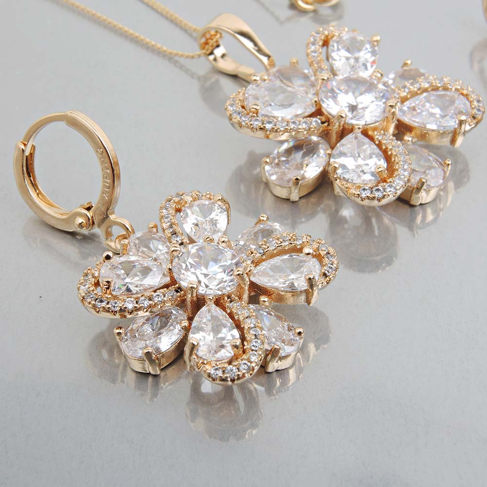 Комплект с золотым покрытием 18K 1 мкр с цирконами (фианитами)