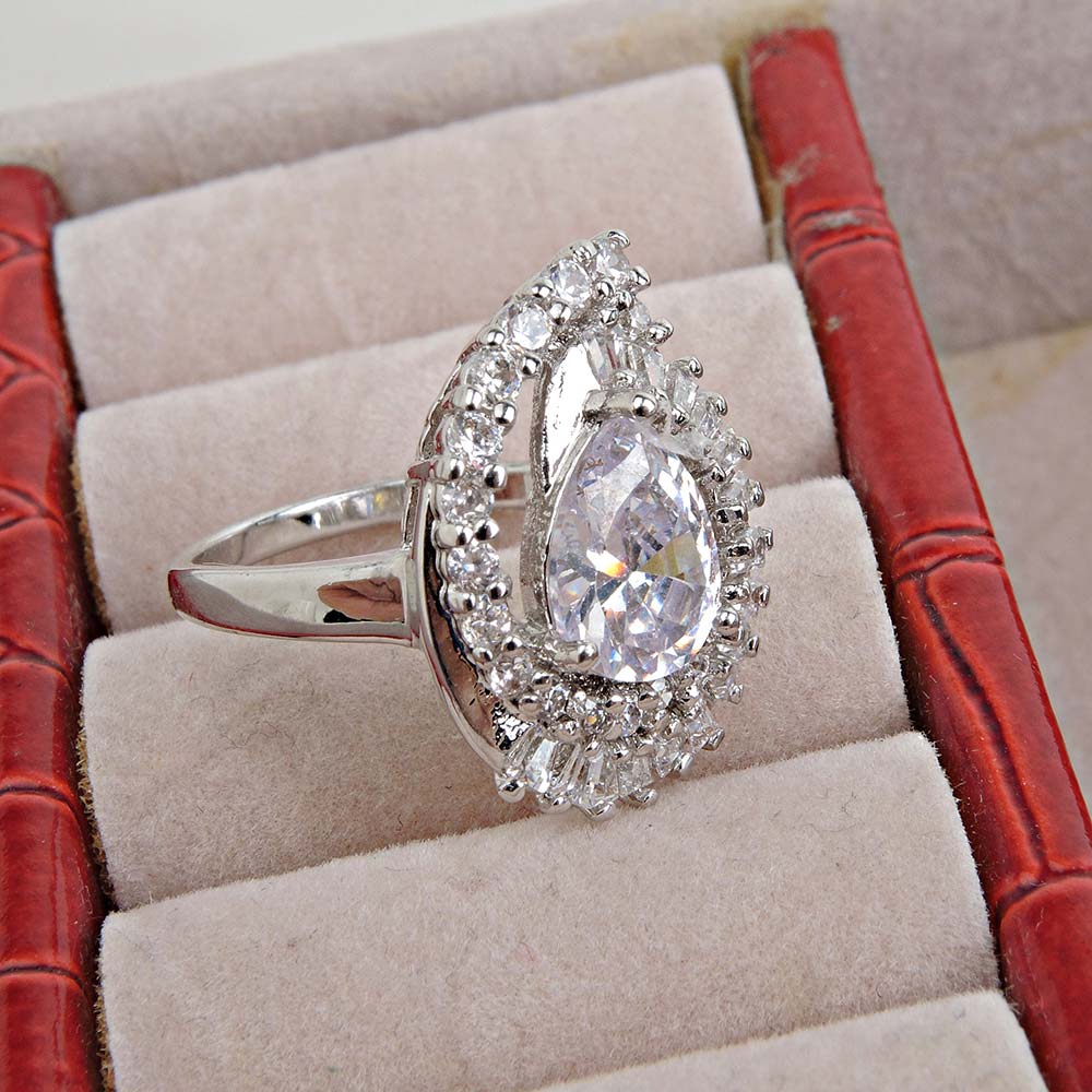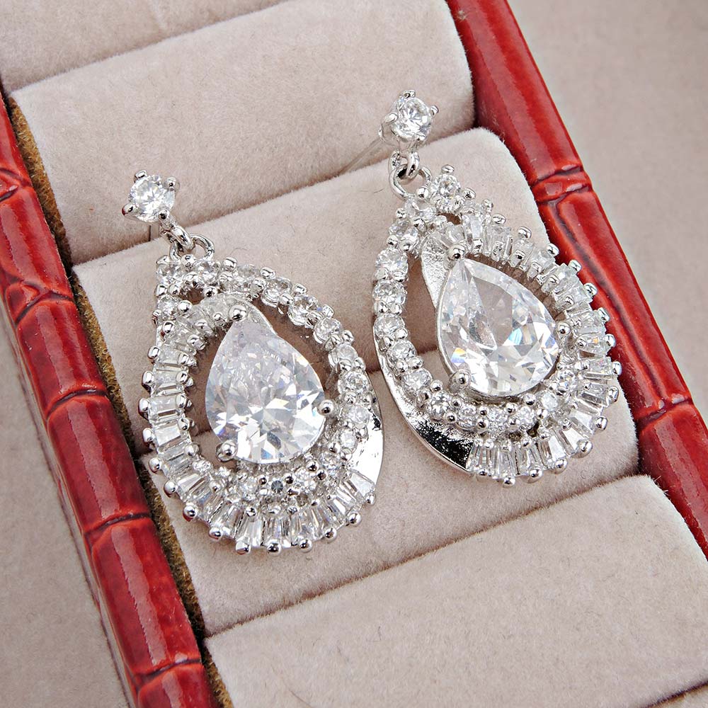 Комплект свадебный белый с родиевым покрытием с цирконами (фианитами)