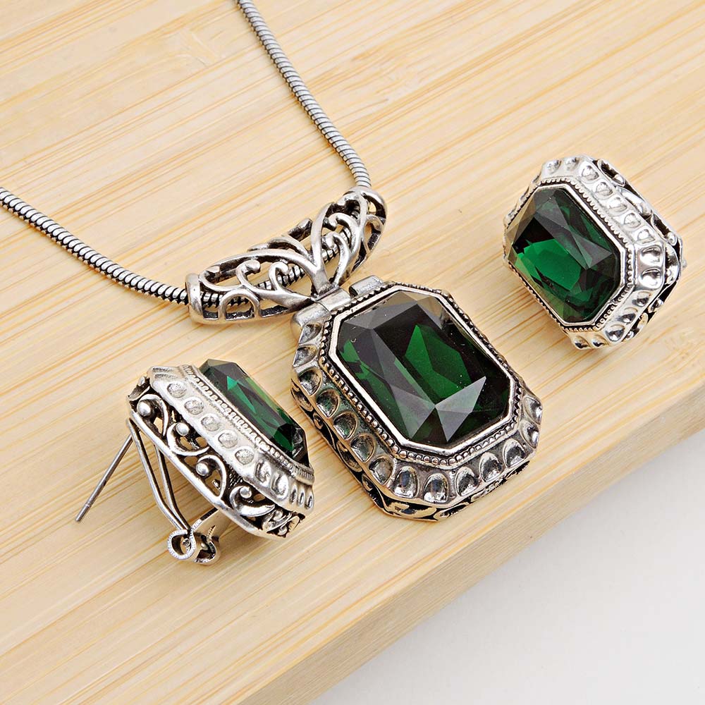 Комплект зелёный с гальваническим покрытием под серебро с кристаллами SWAROVSKI