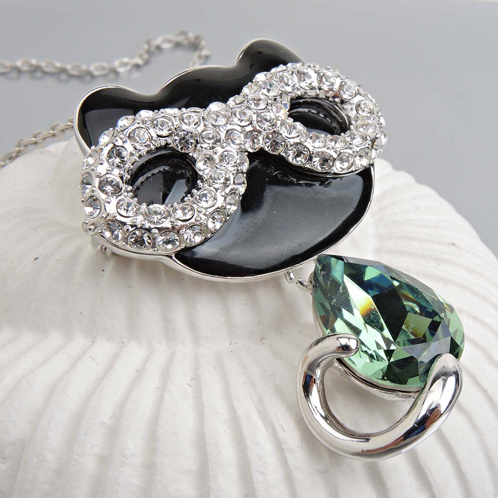 Кулон зелёный с родиевым покрытием с кристаллами SWAROVSKI