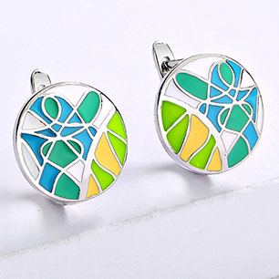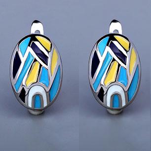 Серьги на гвоздиках в винтажном стиле с родиевым покрытием с эмалью арт.22 7170(id278908)