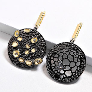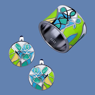Серьги с замком кольцо в винтажном стиле с родиевым покрытием с эмалью арт.22 7702(id278852)