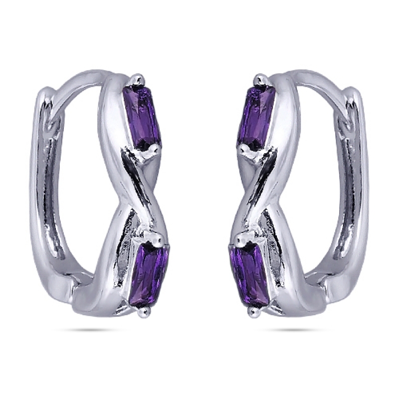 Серьги фиолетовые с родиевым покрытием с цирконами (фианитами)