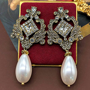 Серьги-каффы на гвоздиках в вечернем стиле с цирконами (фианитами)