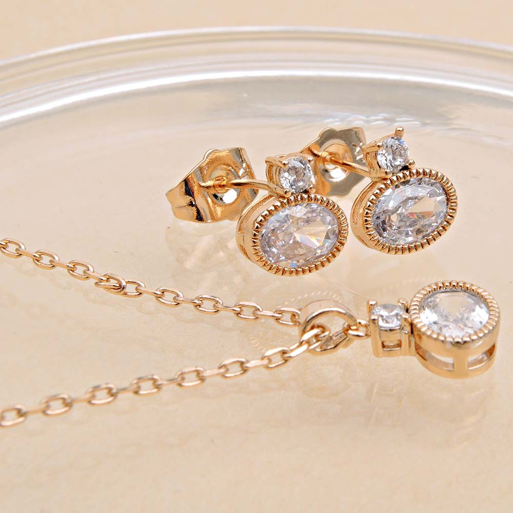 Серьги/Комплект с золотым покрытием 18K 1 мкр с цирконами (фианитами)