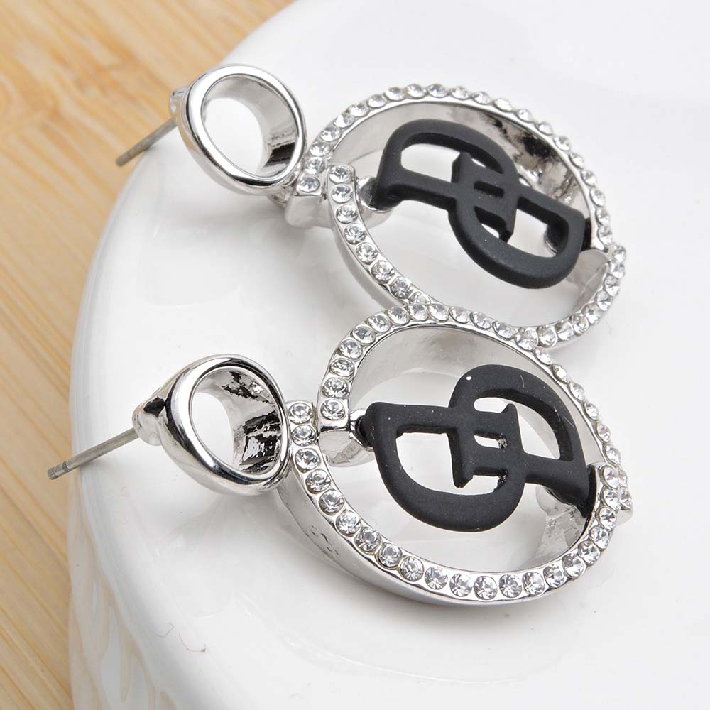 Серьги на гвоздиках бело-чёрные с родиевым покрытием со стразами