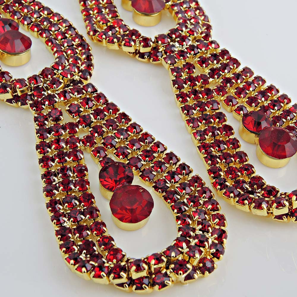 Серьги на гвоздиках красные с гальваническим покрытием под золото со стразами