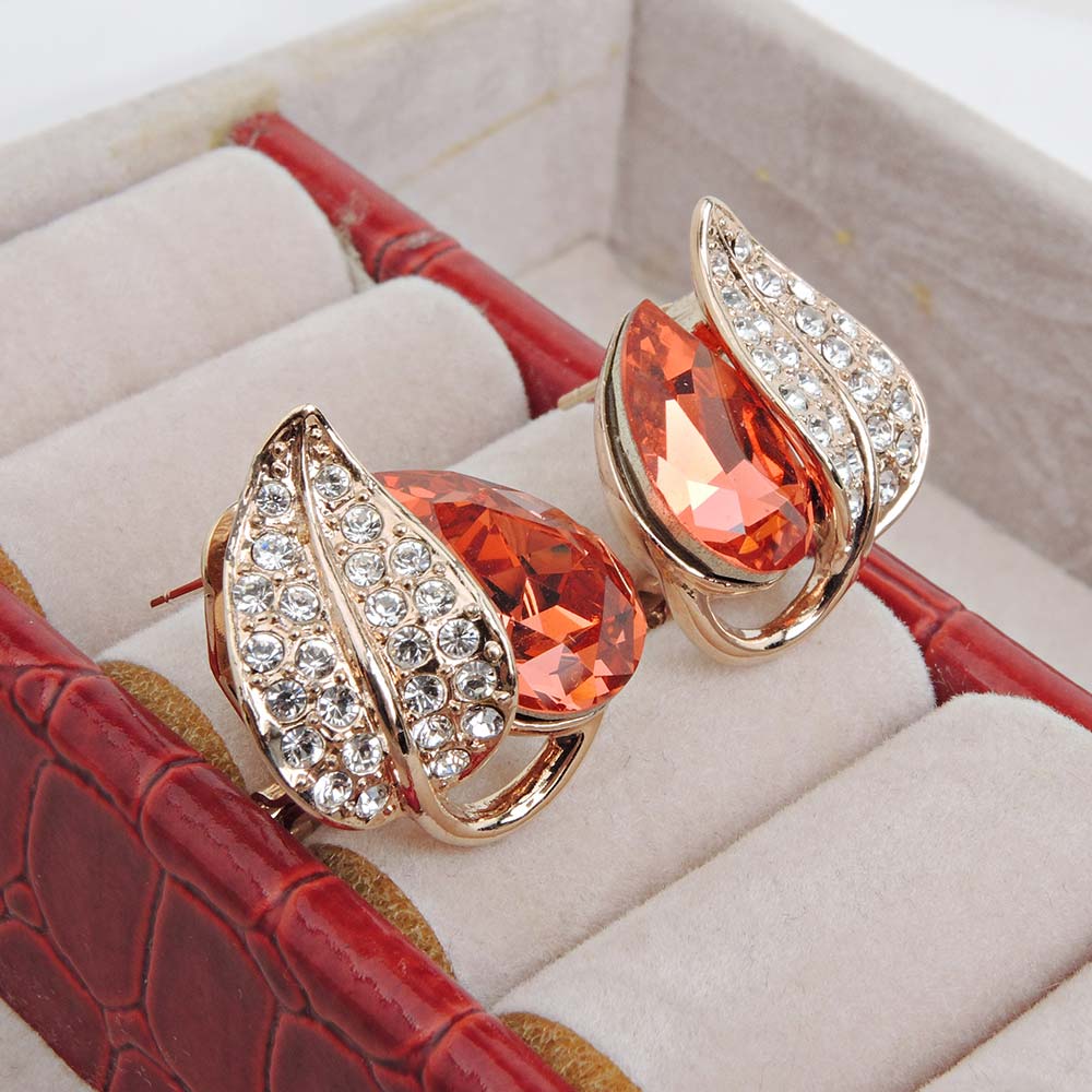 Серьги на гвоздиках розовые с гальваническим покрытием под золото со стразами