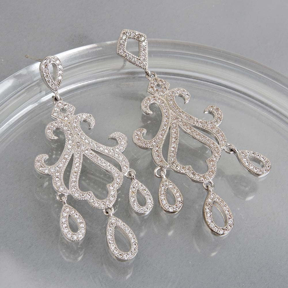 Серьги на гвоздиках с родиевым покрытием с цирконами (фианитами)