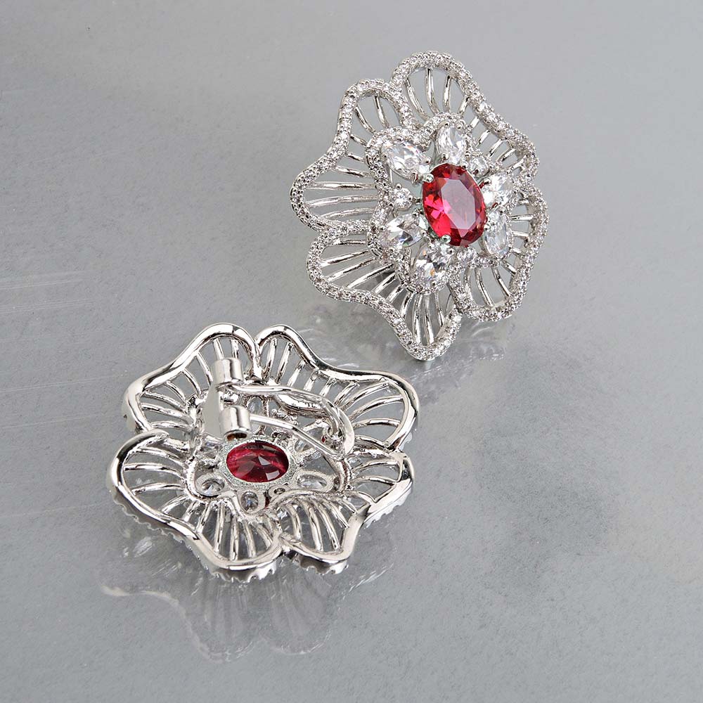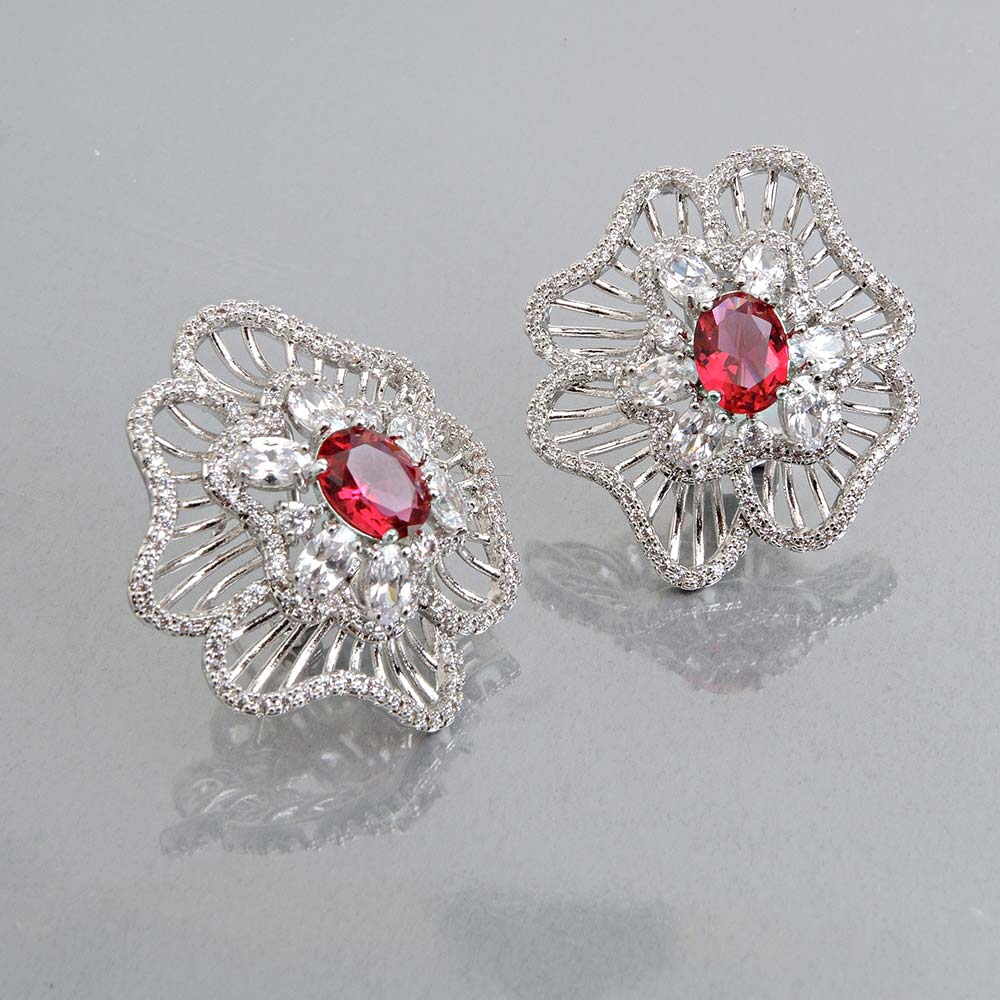 Серьги на гвоздиках с родиевым покрытием с цирконами (фианитами)