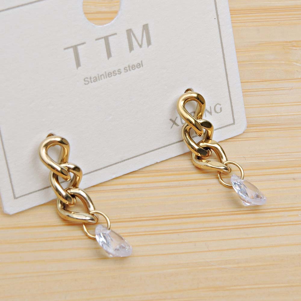 Серьги на гвоздиках с золотым покрытием 18K 1 мкр с цирконами (фианитами)
