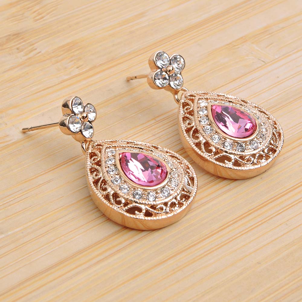 Серьги на гвоздиках с золотым покрытием 18K 1 мкр с цирконами (фианитами)