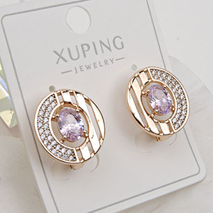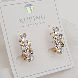 Серьги на гвоздиках с золотым покрытием 18K 1 мкр со стразами