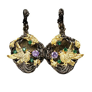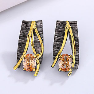 Серьги на гвоздиках в винтажном стиле с золотым покрытием 14K 1 мкр с цирконами (фианитами)
