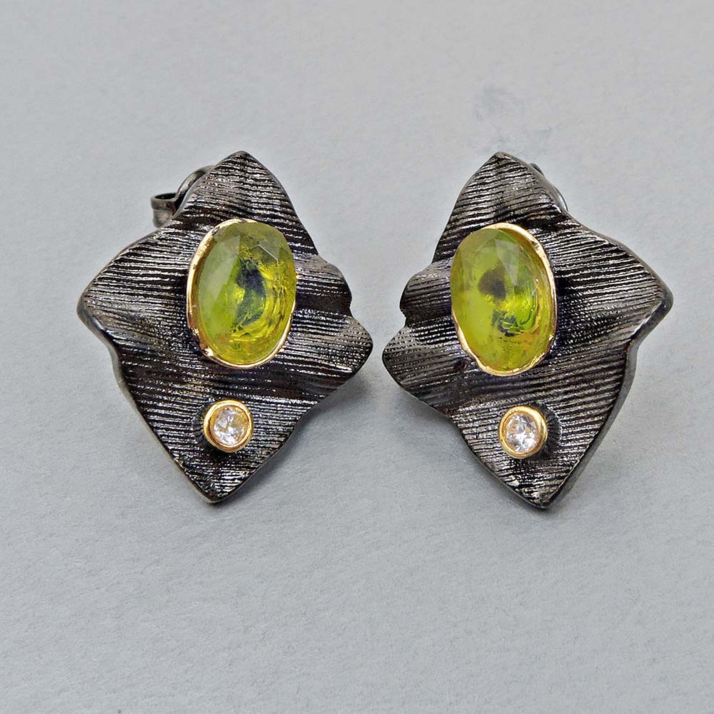 Серьги на гвоздиках в винтажном стиле с золотым покрытием 14K 1 мкр с кристаллом