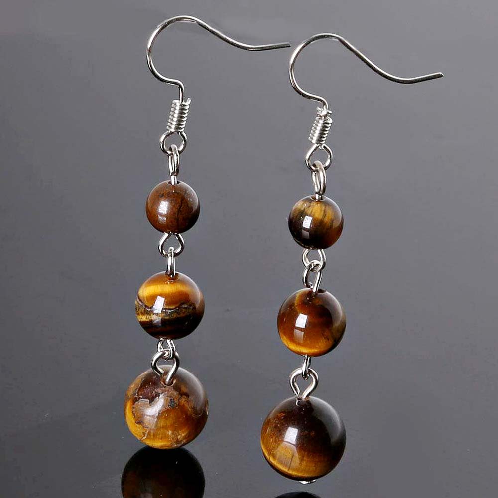 Серьги на крючках с натуральным камнем Тигровый глаз