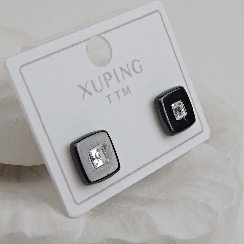 Серьги-пуссеты на гвоздиках с родиевым покрытием со вставками из керамики