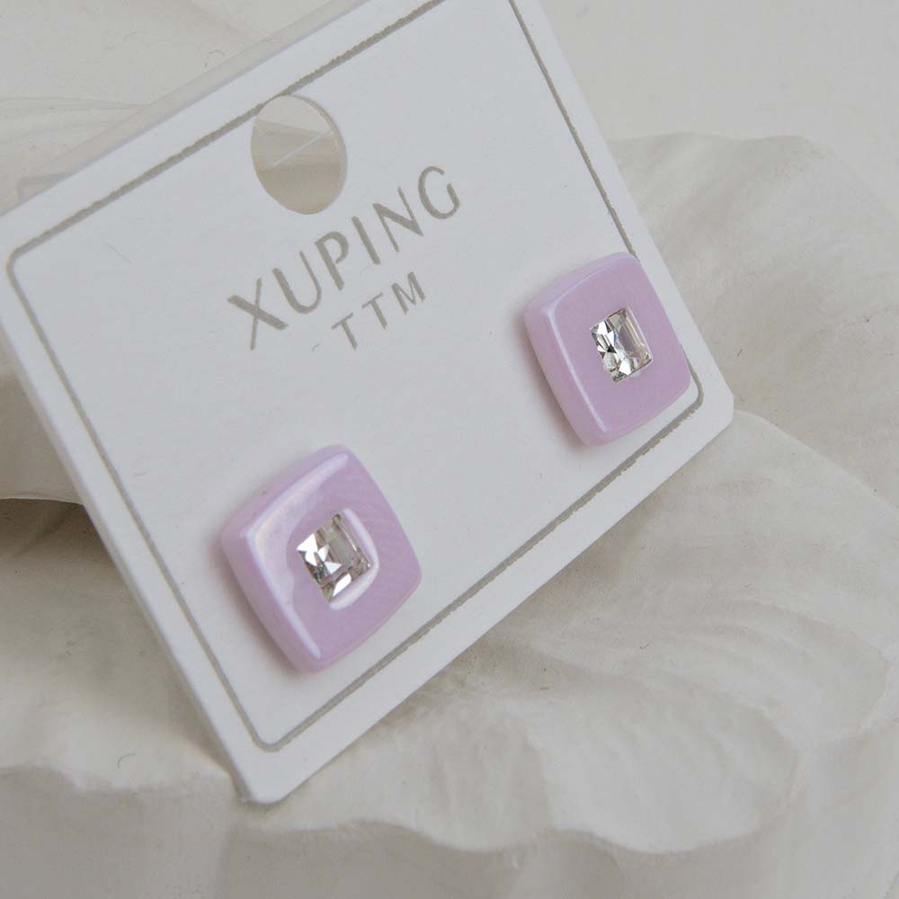 Серьги-пуссеты на гвоздиках с родиевым покрытием со вставками из керамики