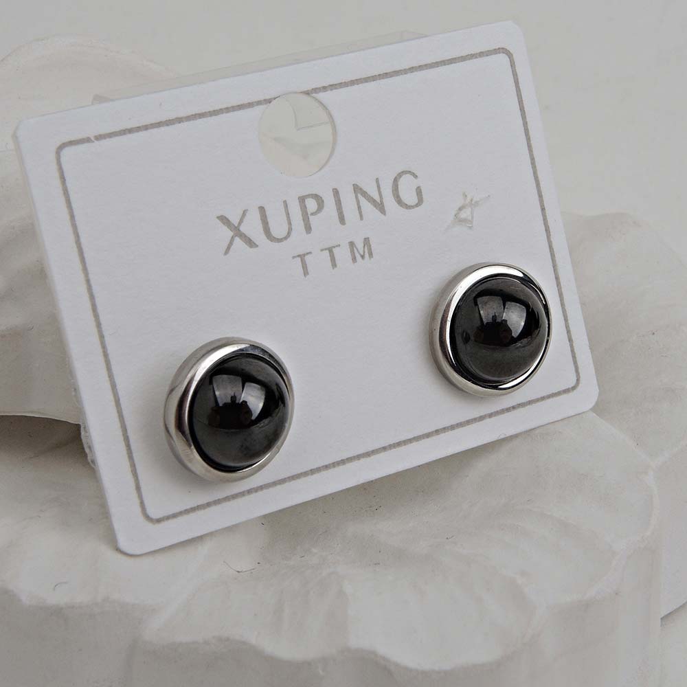 Серьги-пуссеты на гвоздиках с родиевым покрытием со вставками из керамики