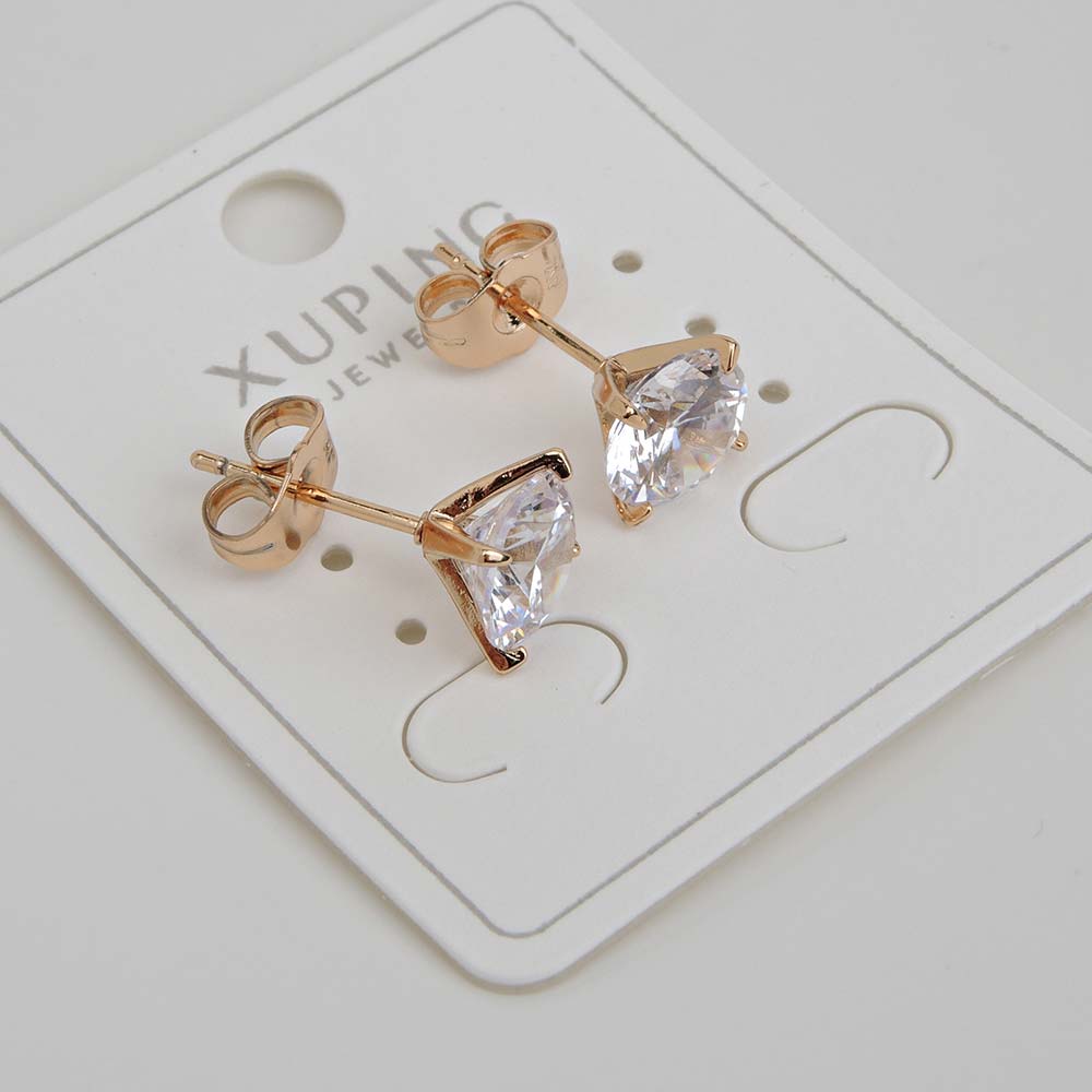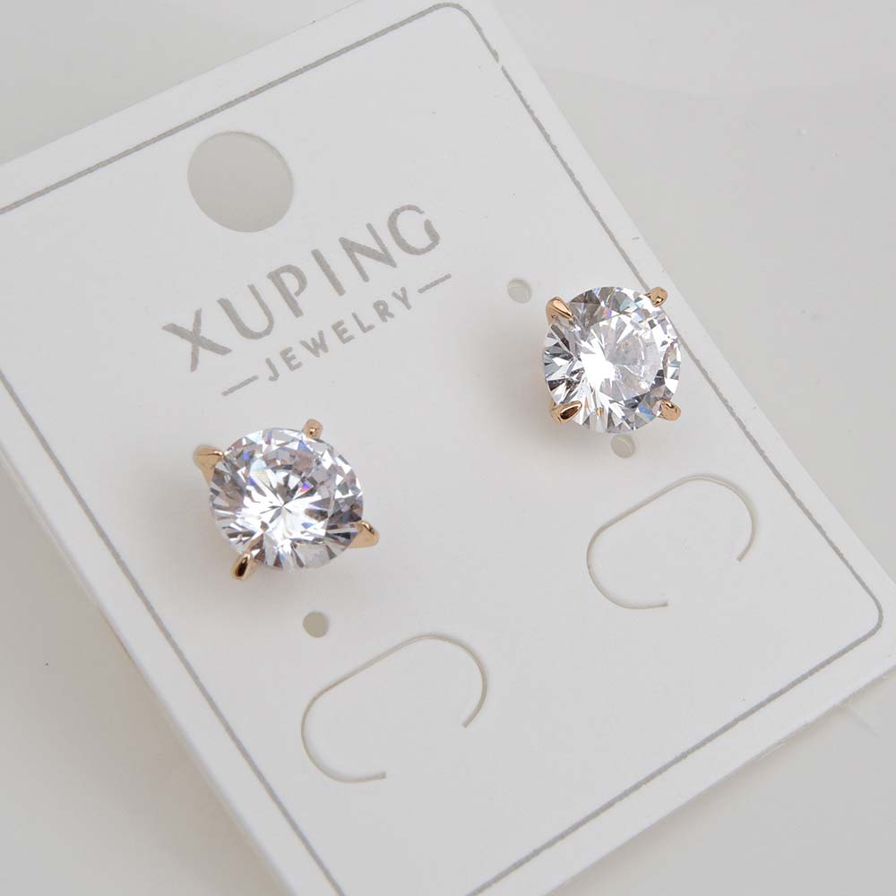 Серьги-пуссеты на гвоздиках с золотым покрытием 18K 1 мкр с цирконами (фианитами)