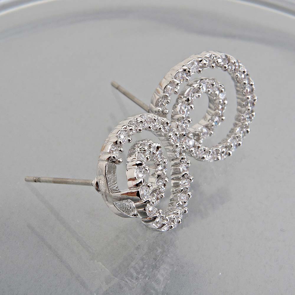 Серьги-пуссеты на гвоздиках свадебные белые с родиевым покрытием с цирконами (фианитами)