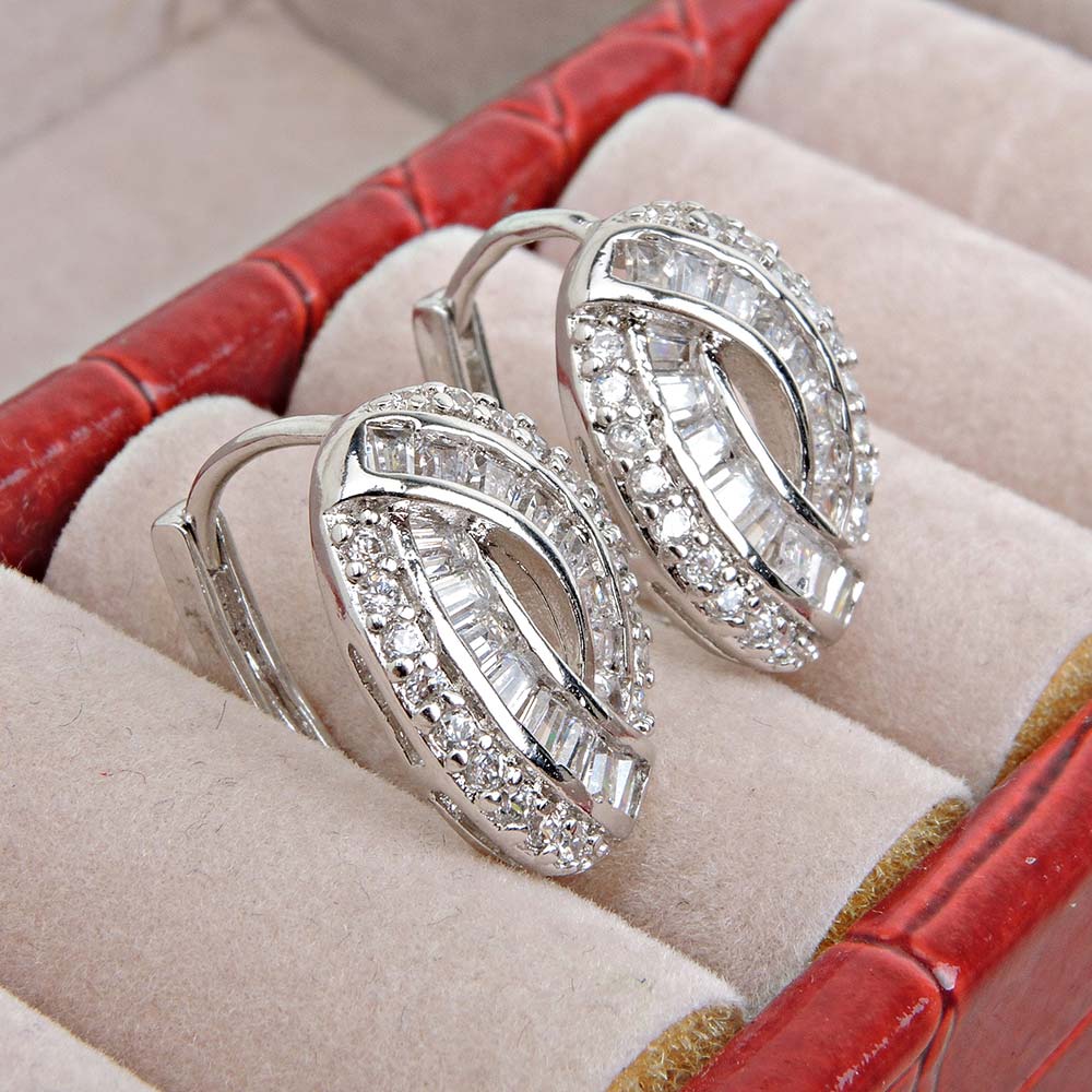 Серьги-пуссеты на гвоздиках свадебные белые с родиевым покрытием с цирконами (фианитами)